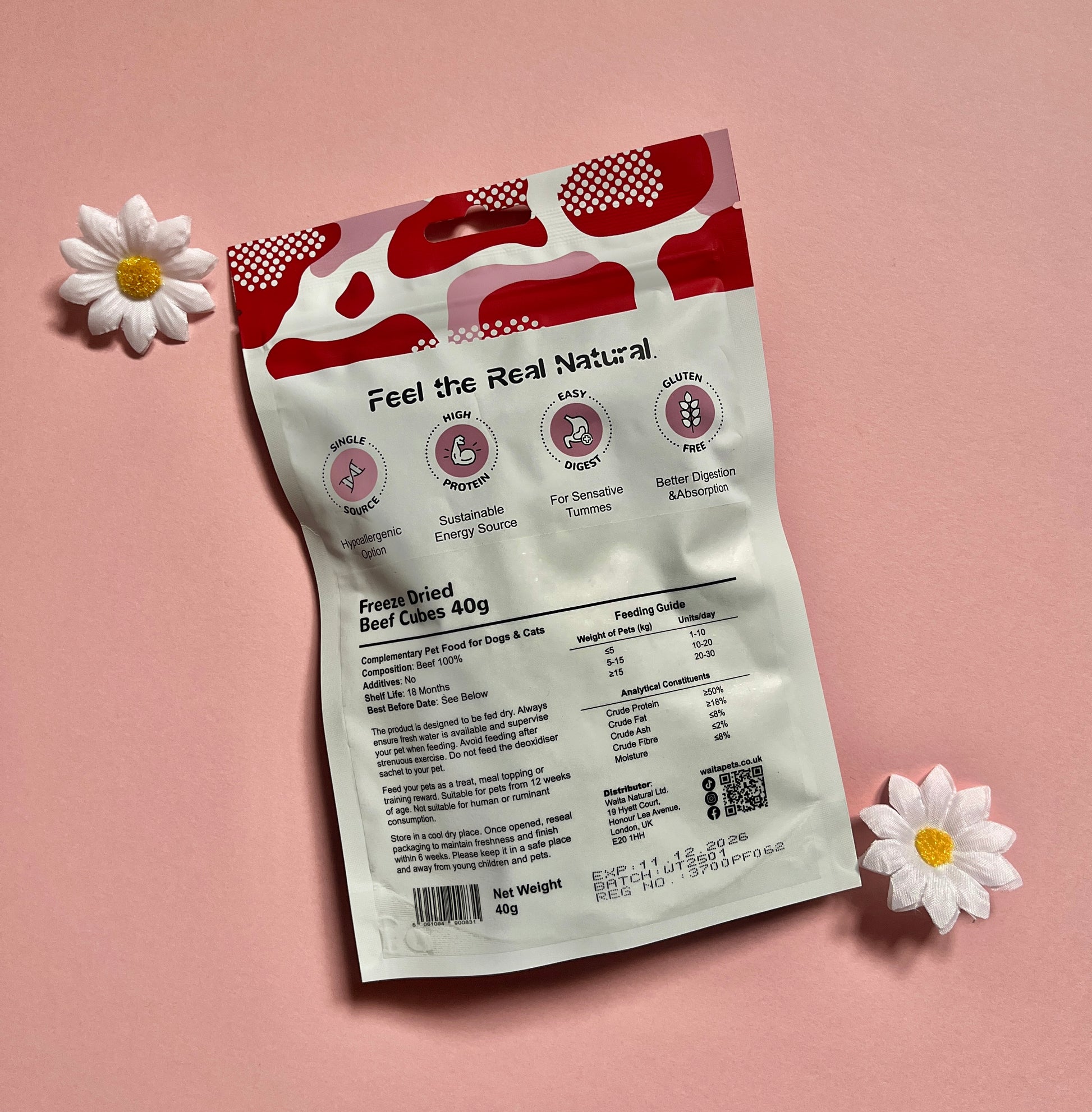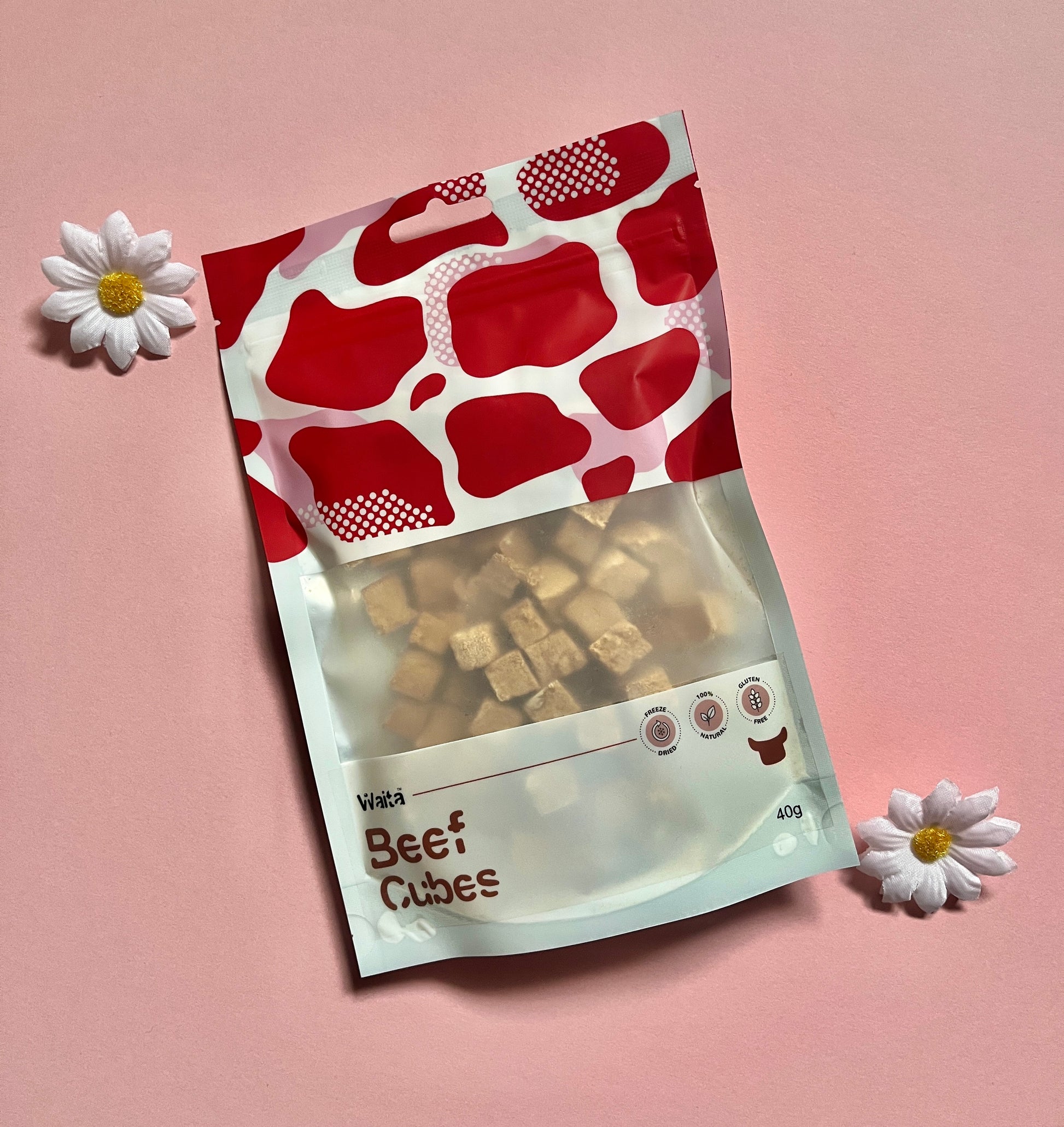 Waita Freeze-Dried Beef Cubes are made from 100% premium beef, gently freeze-dried to lock in its full nutritional value and savory flavor. Naturally rich in protein, essential amino acids, and minerals such as iron and zinc, these meaty cubes provide the building blocks for strong muscles, energy metabolism, and immune support.